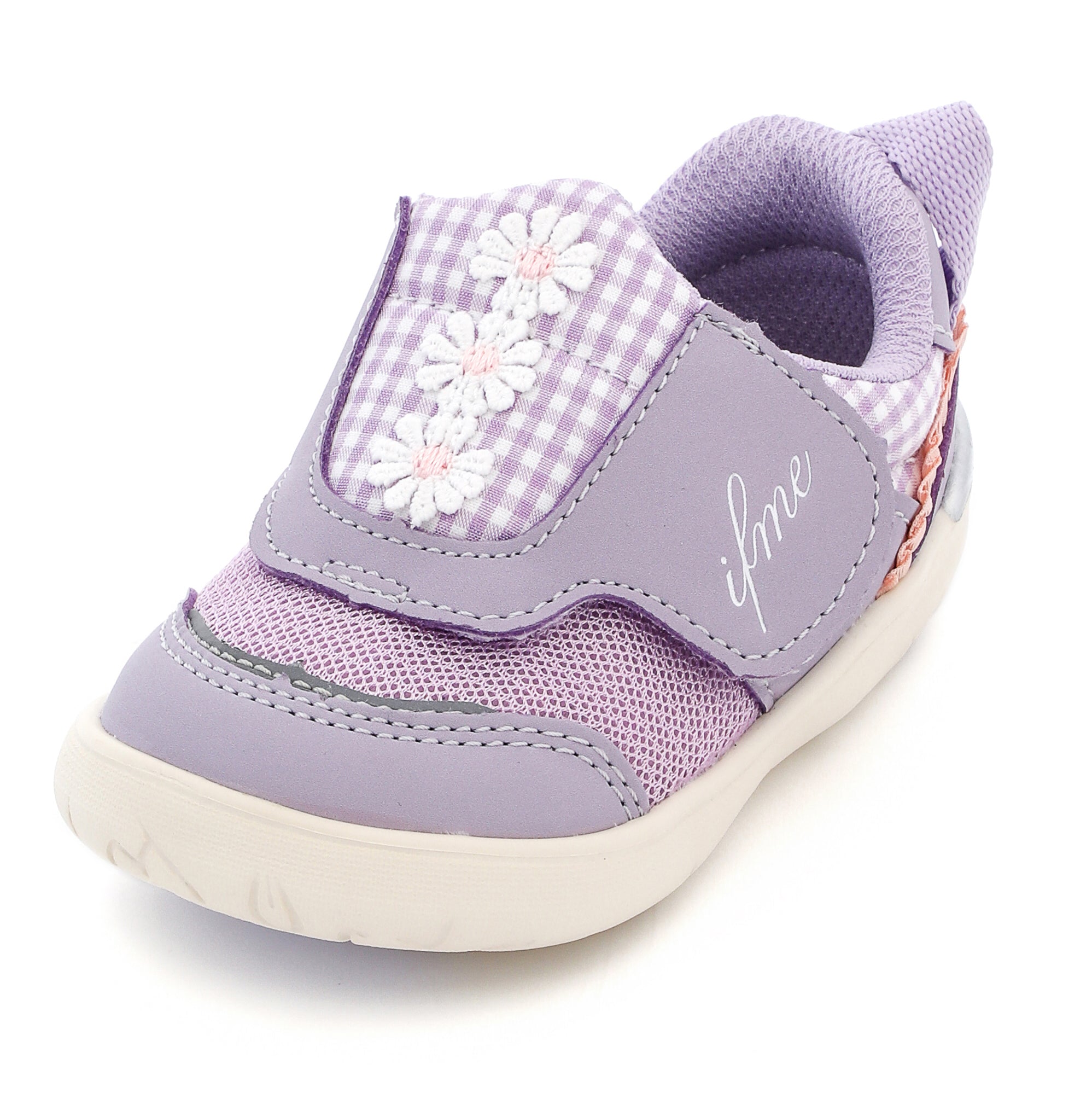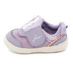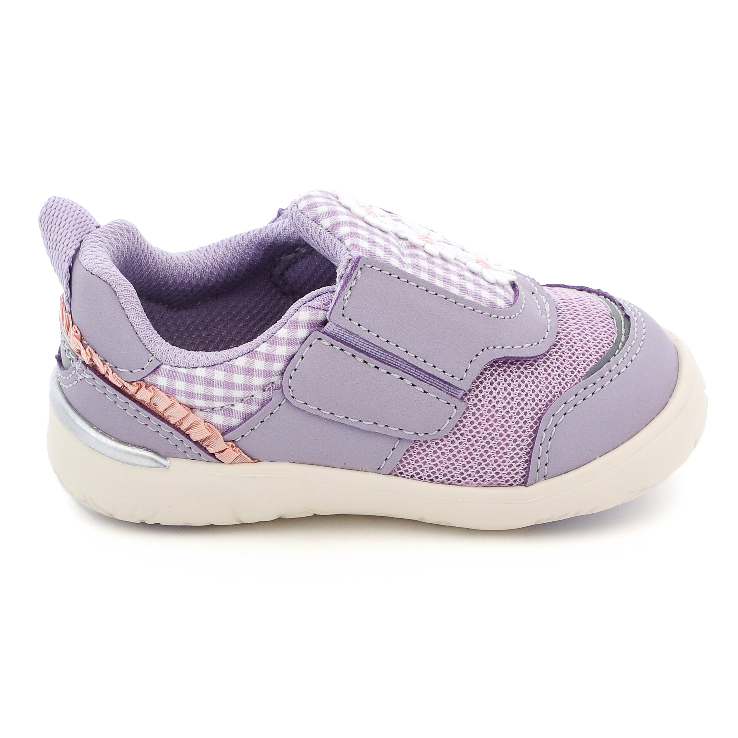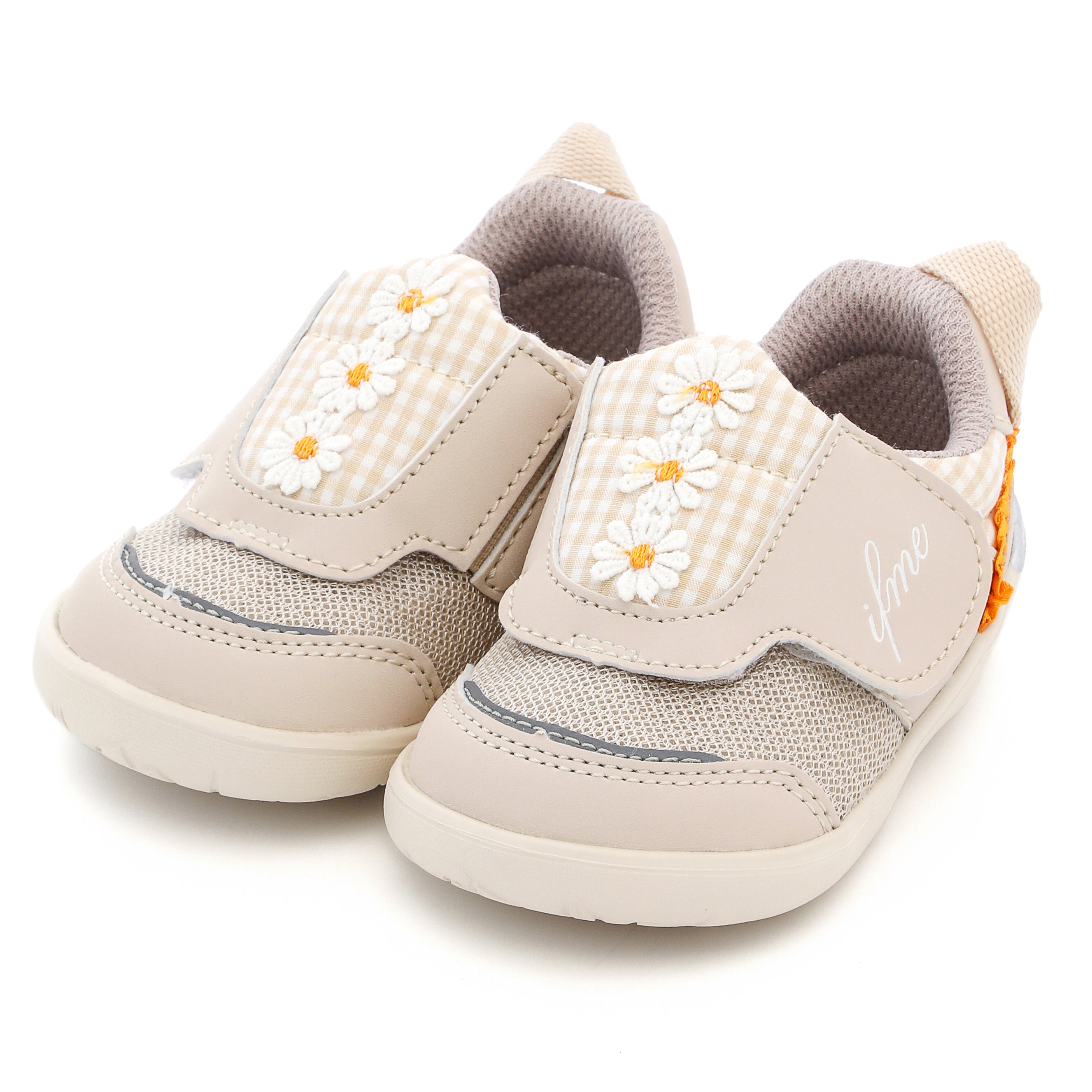 脱ぎ履き簡単なpattoスニーカー。ちょこんと並んだデイジーモチーフが魅力のシューズです。さりげなくあしらったチェック生地にもこだわり、キュートな一足に仕上げました。お揃いでキッズサイズもあります。