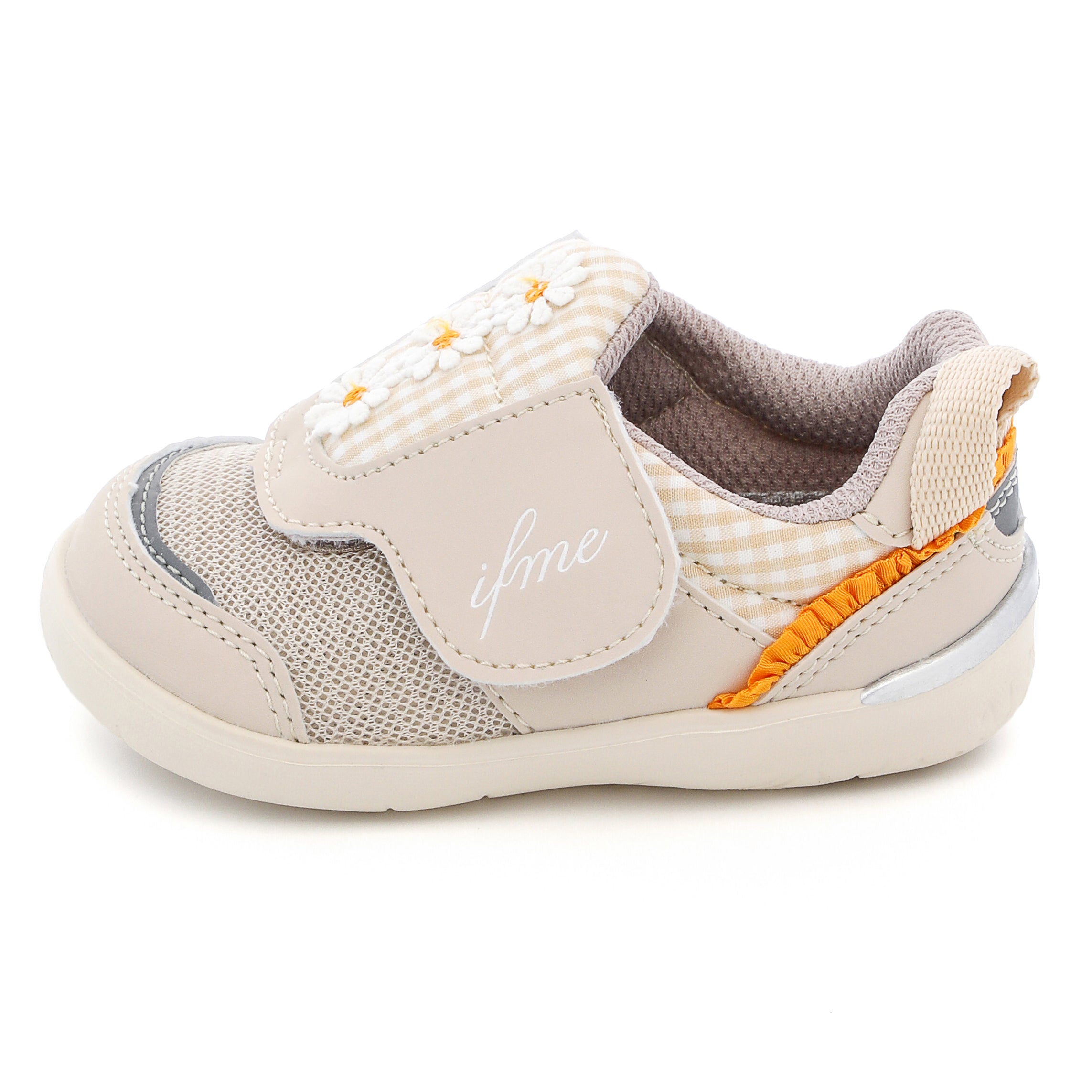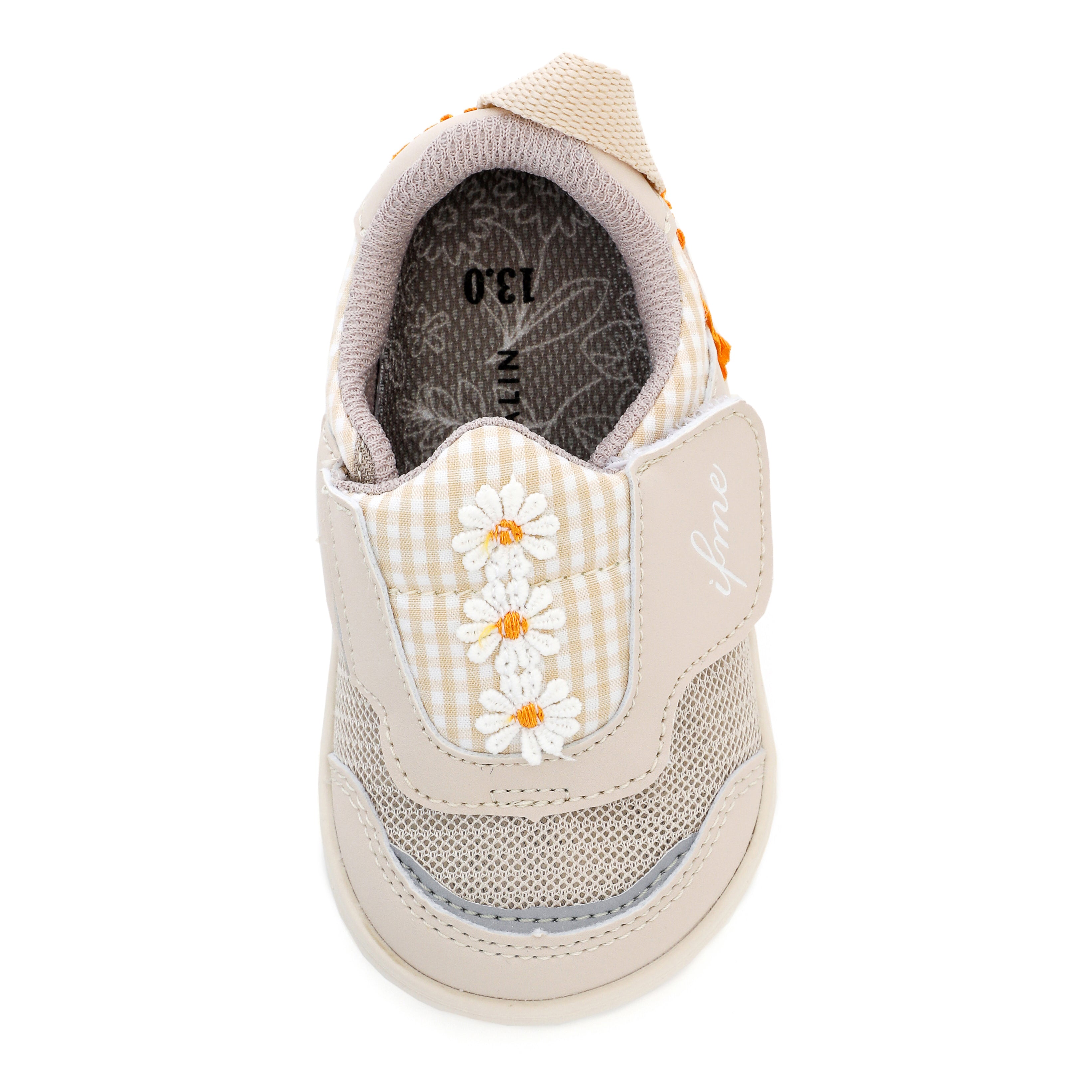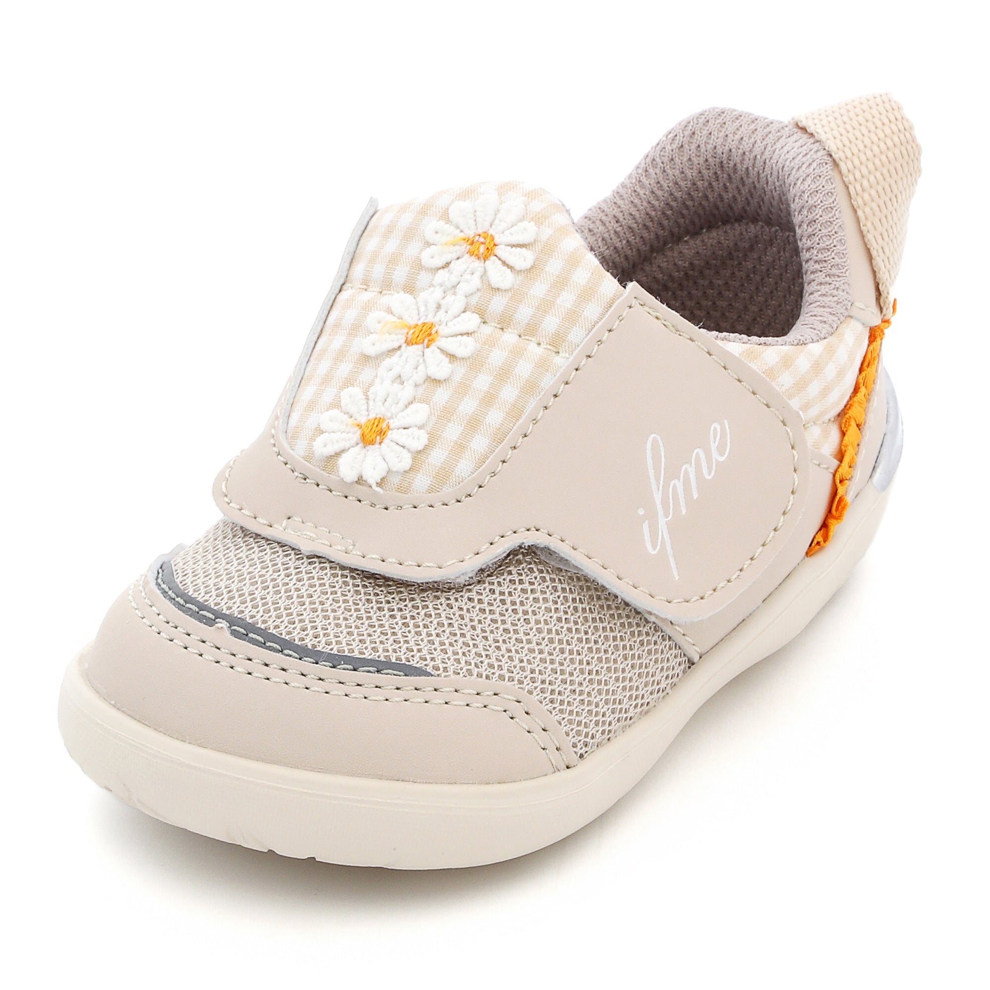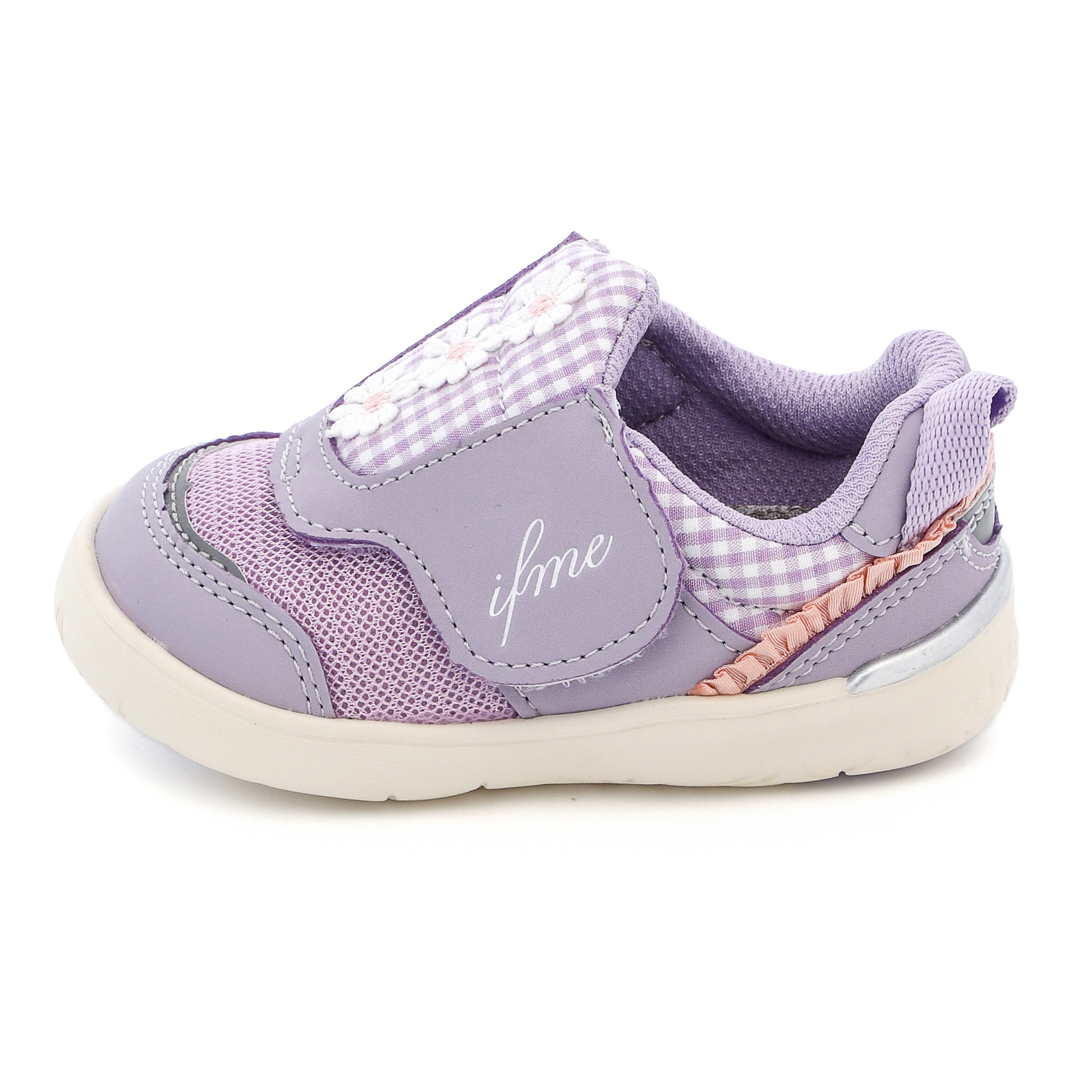 脱ぎ履き簡単なpattoスニーカー。ちょこんと並んだデイジーモチーフが魅力のシューズです。さりげなくあしらったチェック生地にもこだわり、キュートな一足に仕上げました。お揃いでキッズサイズもあります。