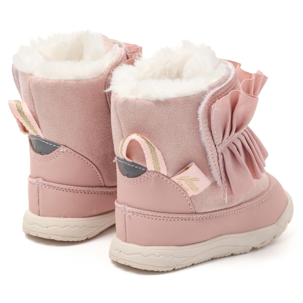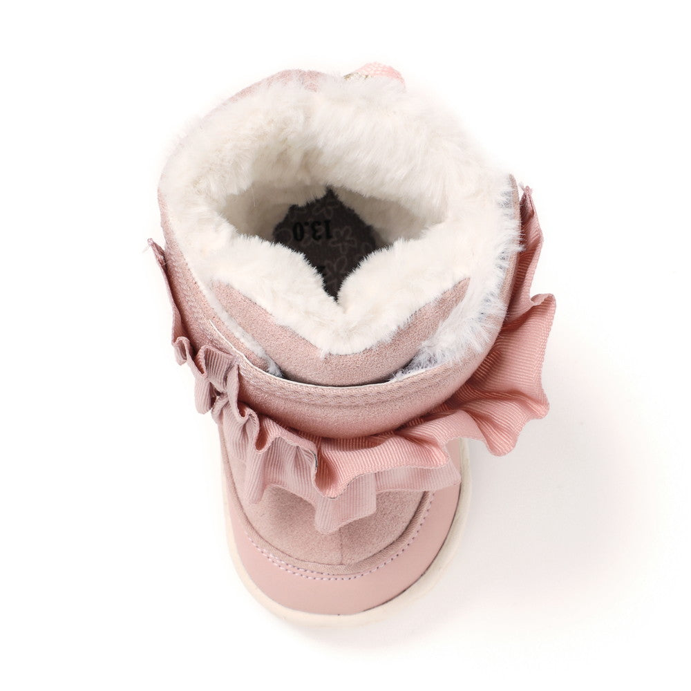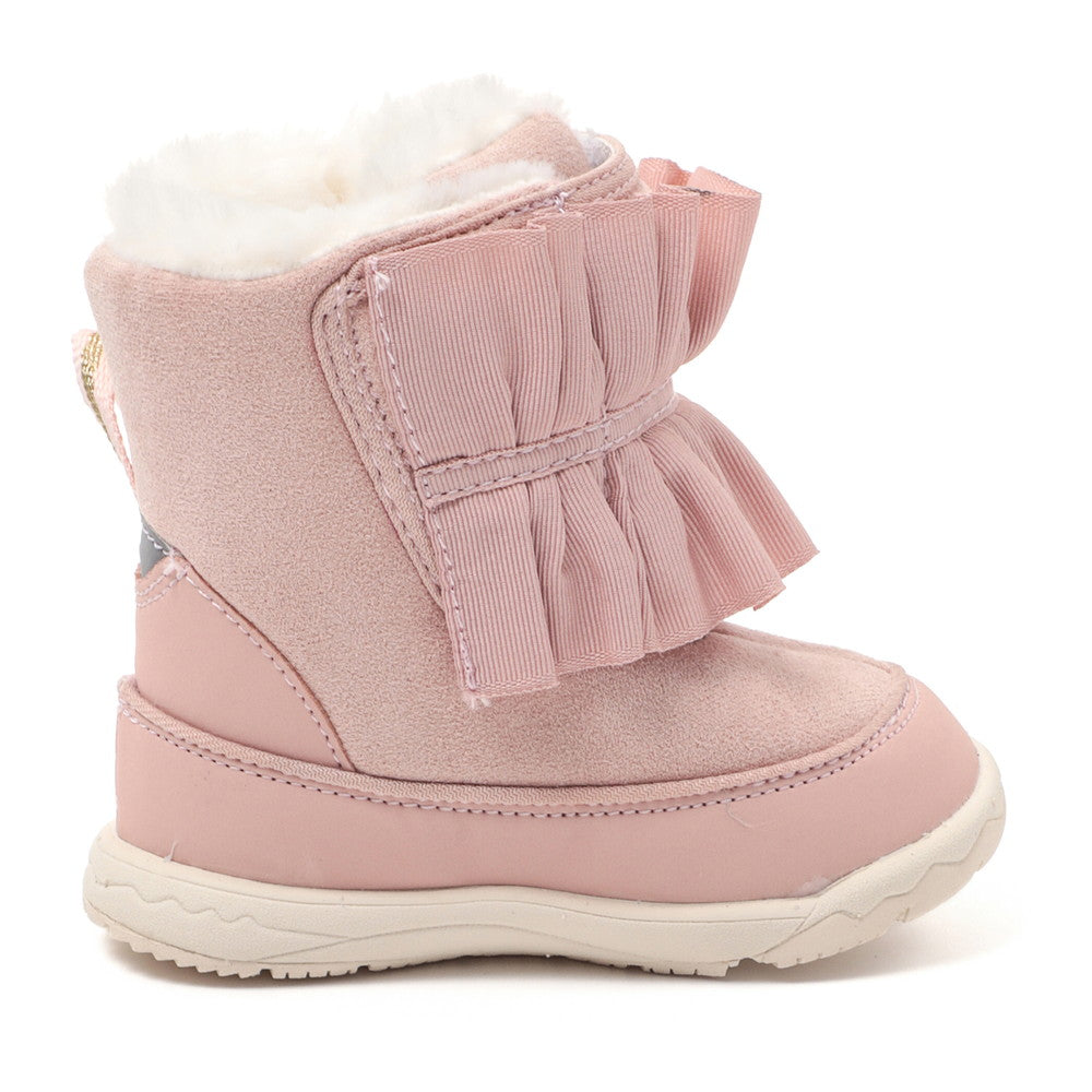 昨年大人気だったフリルモチーフブーツの最新モデル。二重にしたたっぷりフリルがとびきりキュートなアイテムです。大きく開く仕様なので、厚めの靴下やボトムスでも履きやすかったり、防滑仕様でも軽いアウトソールを使用したり、子供にとっても履きやすいのがうれしいポイント。おそろいでキッズもあります。