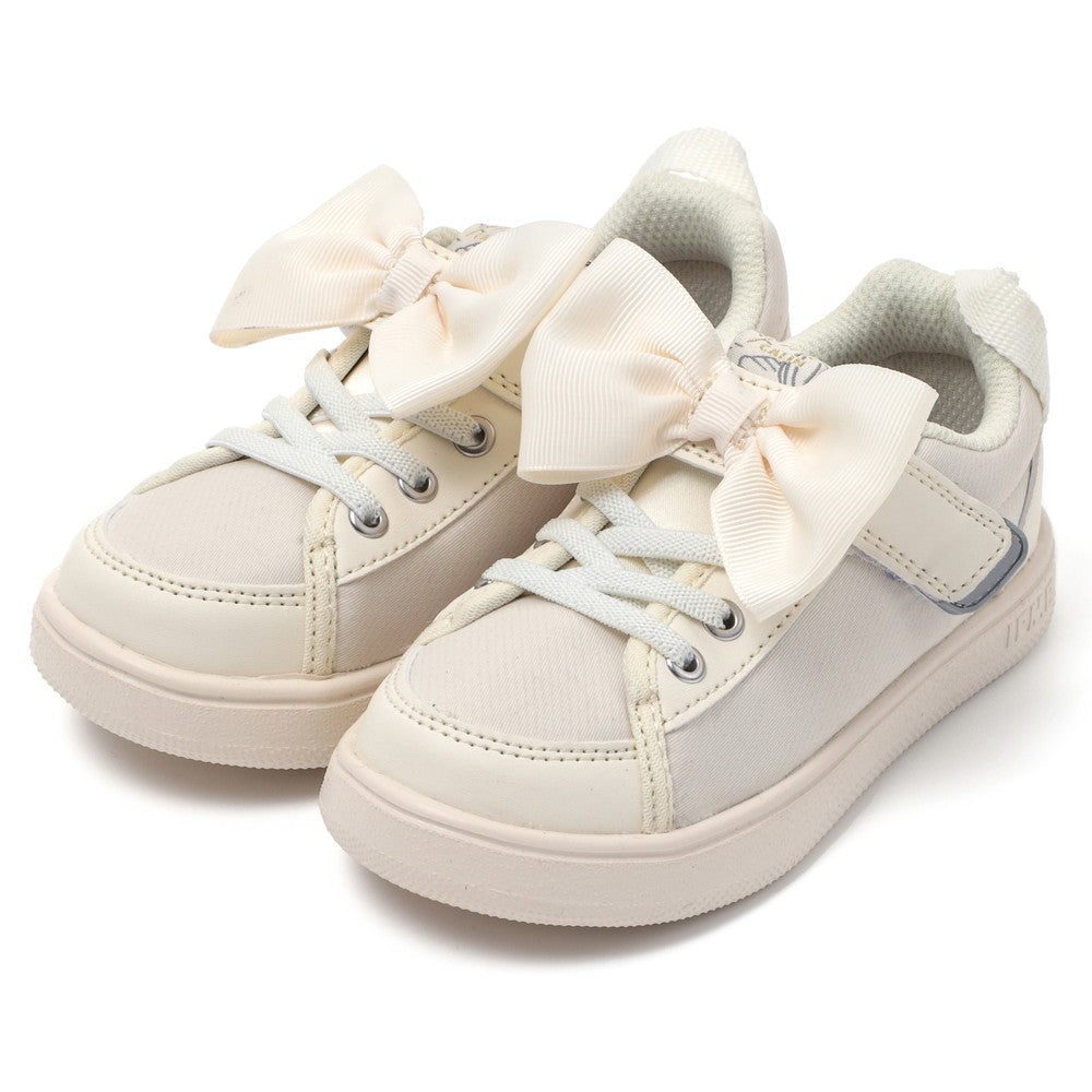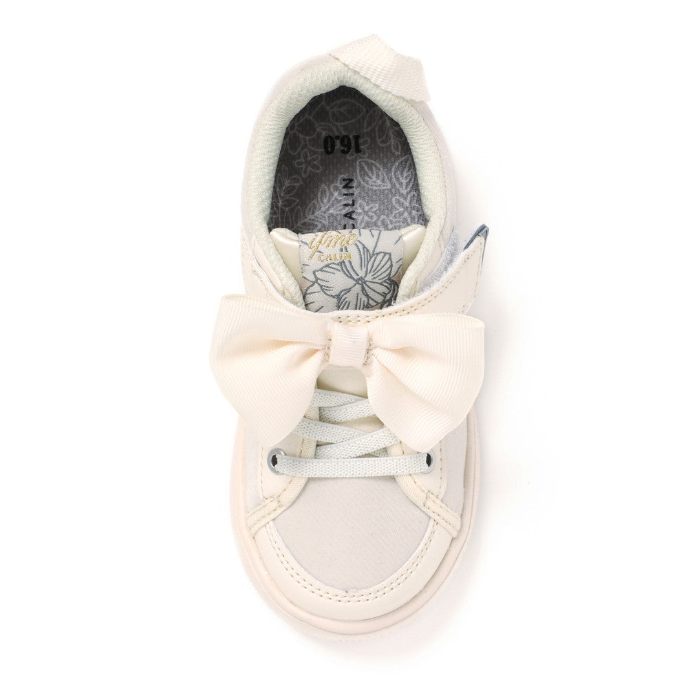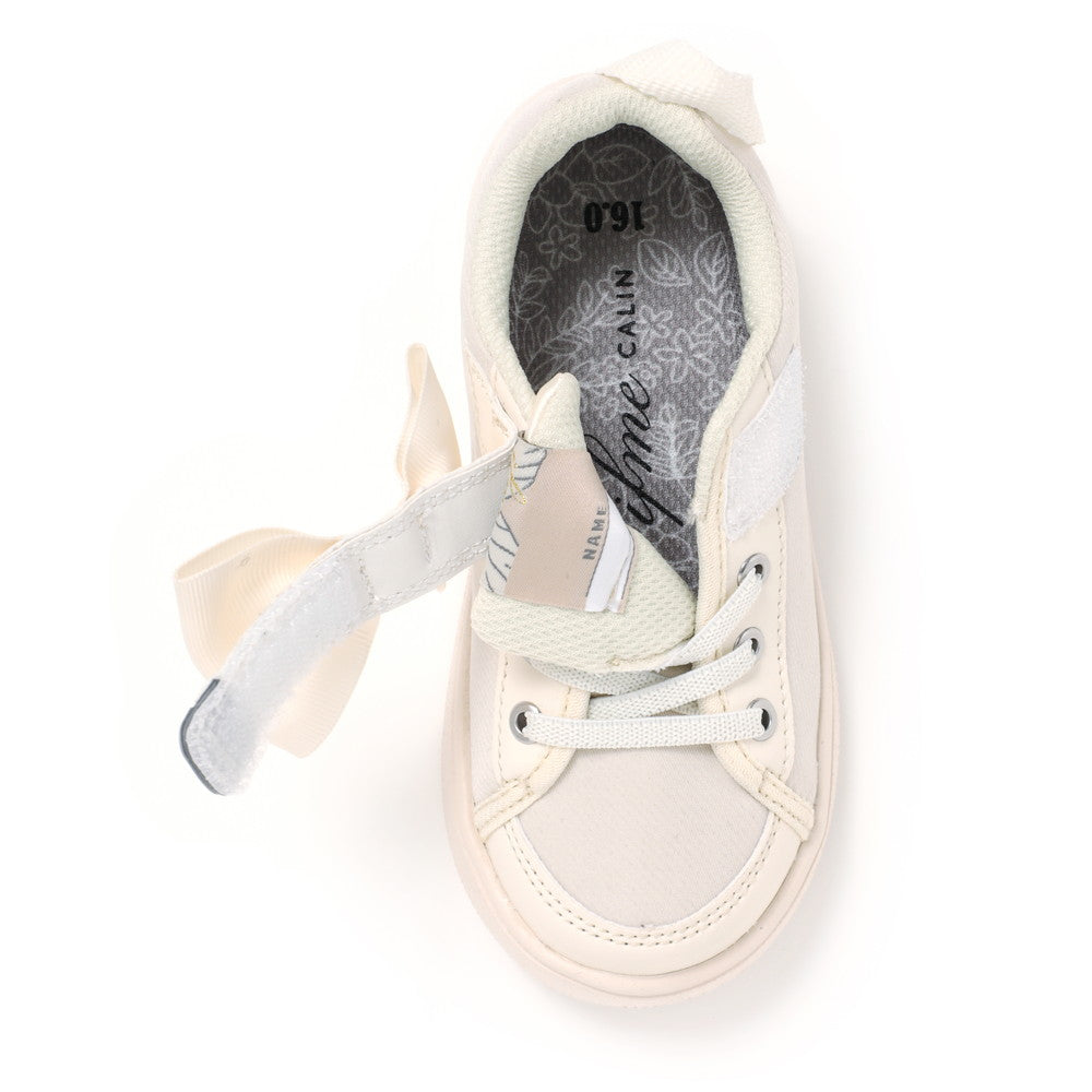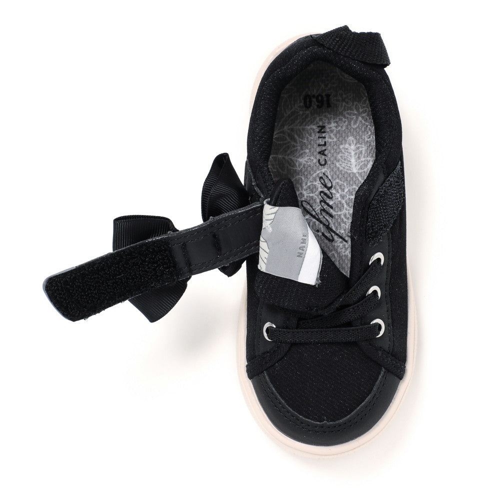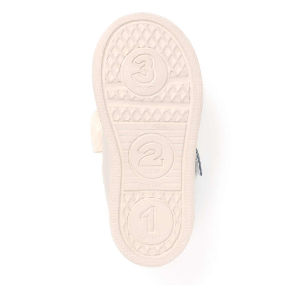 グログランの大きなリボンがポイントのワンベルトシューズ。控え目な光沢感が上品で、オケージョンにもおすすめのアイテムです。お揃いでベビー、ママもあります。