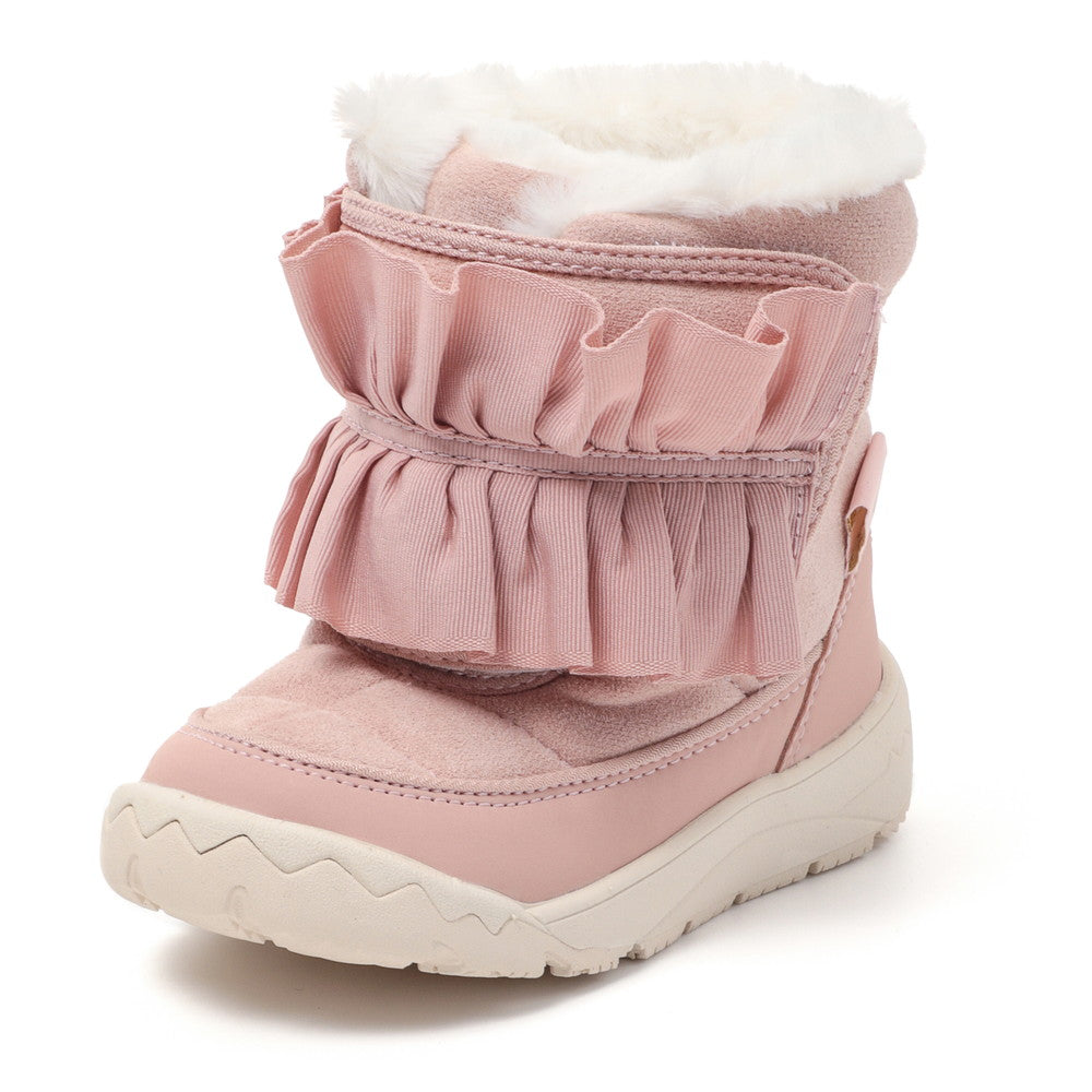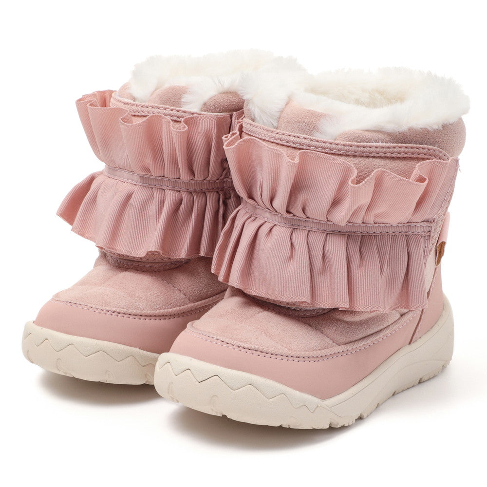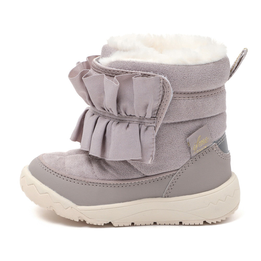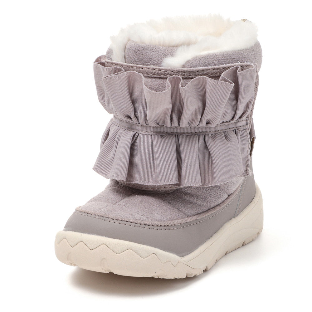 昨年大人気だったフリルモチーフブーツの最新モデル。二重にしたたっぷりフリルがとびきりキュートなアイテムです。大きく開く仕様なので、厚めの靴下やボトムスでも履きやすかったり、防滑仕様でも軽いアウトソールを使用したり、子供にとっても履きやすいのがうれしいポイント。おそろいでベビーもあります。