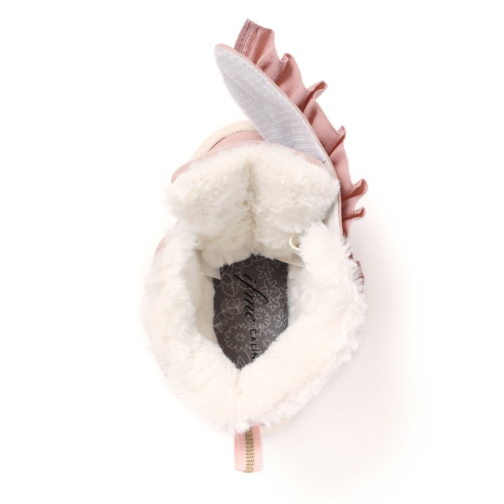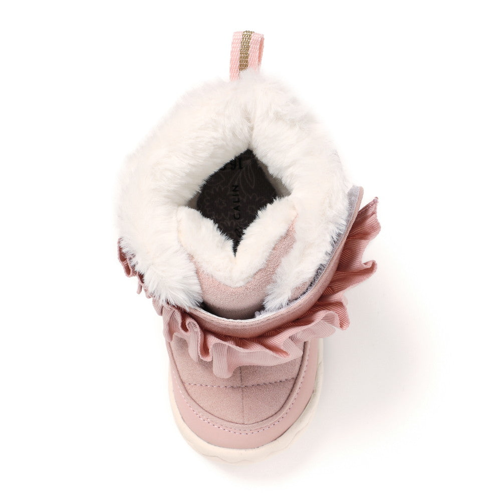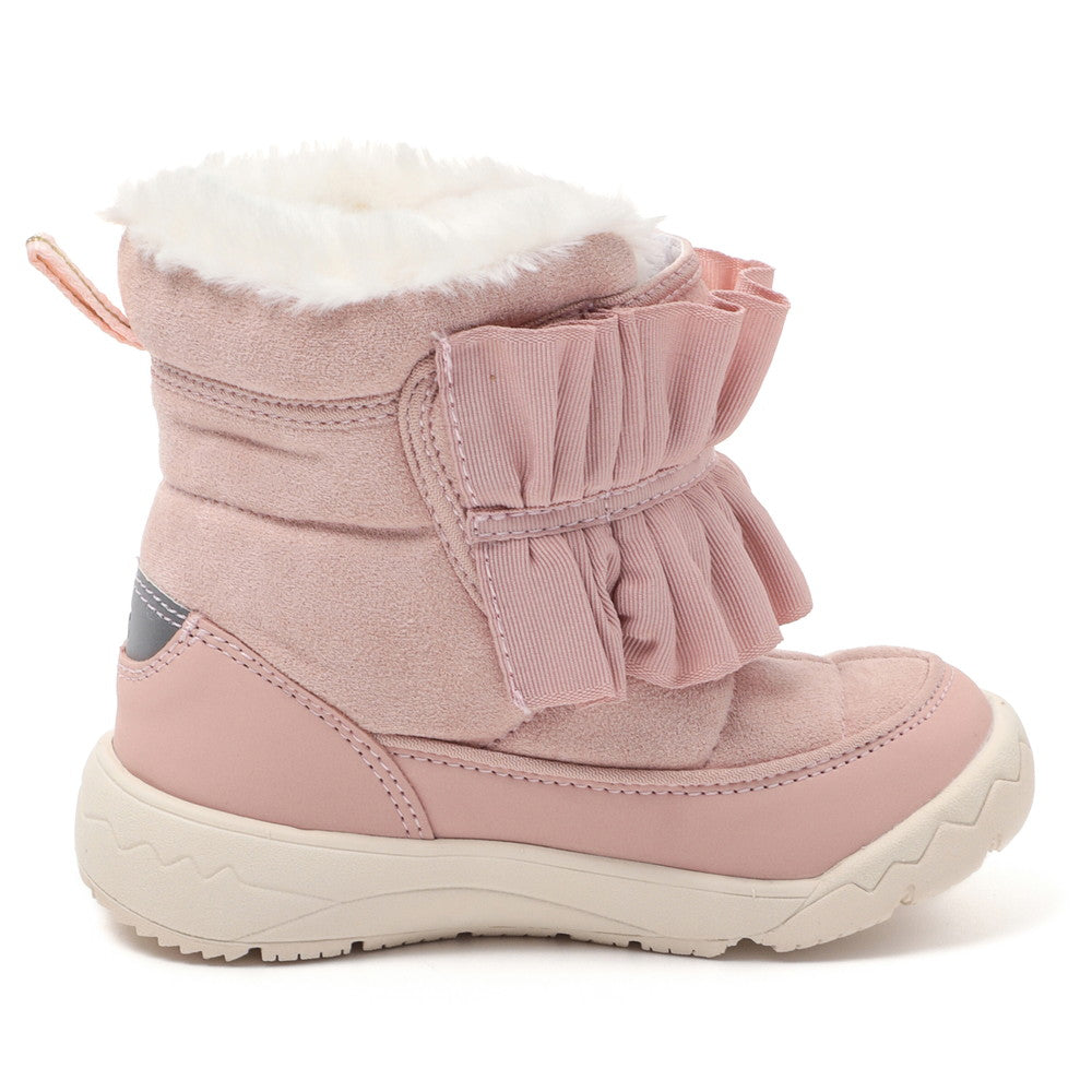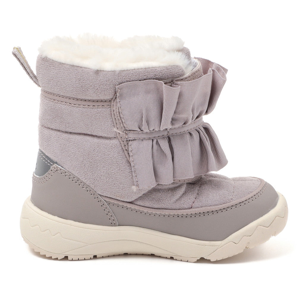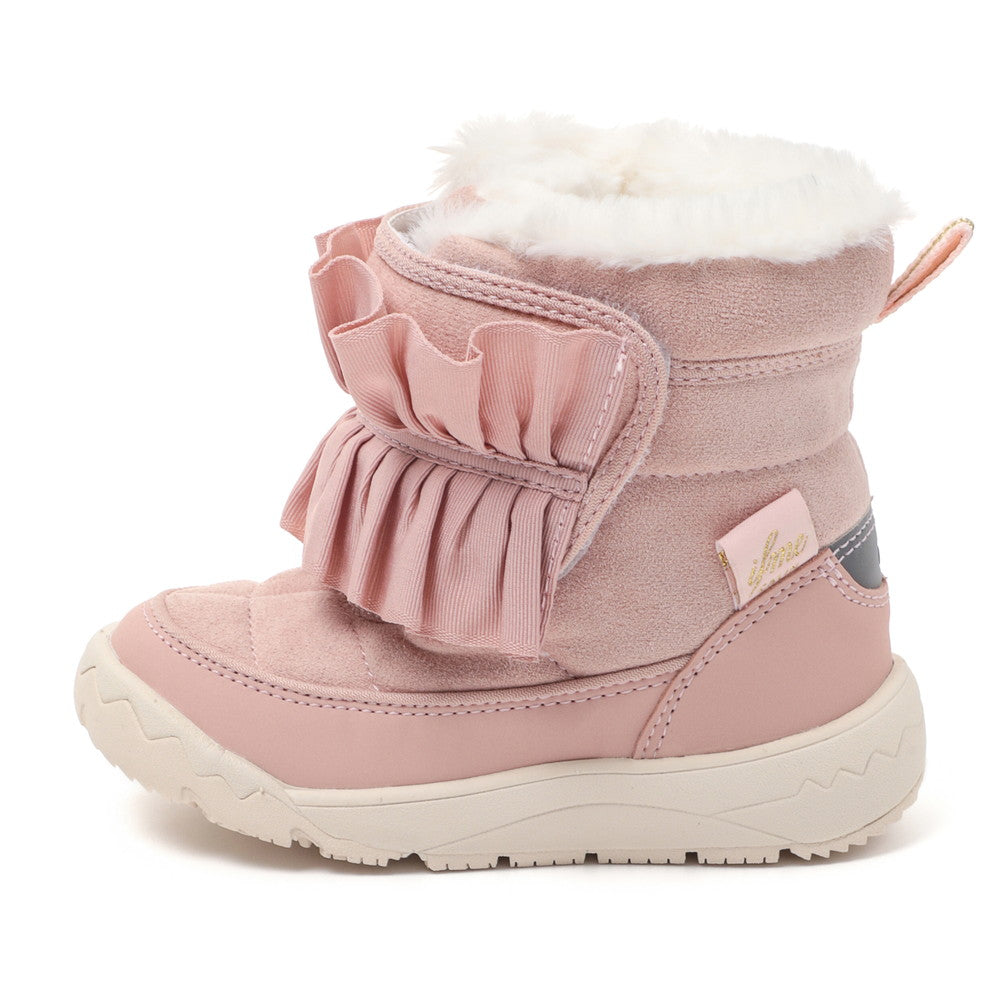昨年大人気だったフリルモチーフブーツの最新モデル。二重にしたたっぷりフリルがとびきりキュートなアイテムです。大きく開く仕様なので、厚めの靴下やボトムスでも履きやすかったり、防滑仕様でも軽いアウトソールを使用したり、子供にとっても履きやすいのがうれしいポイント。おそろいでベビーもあります。