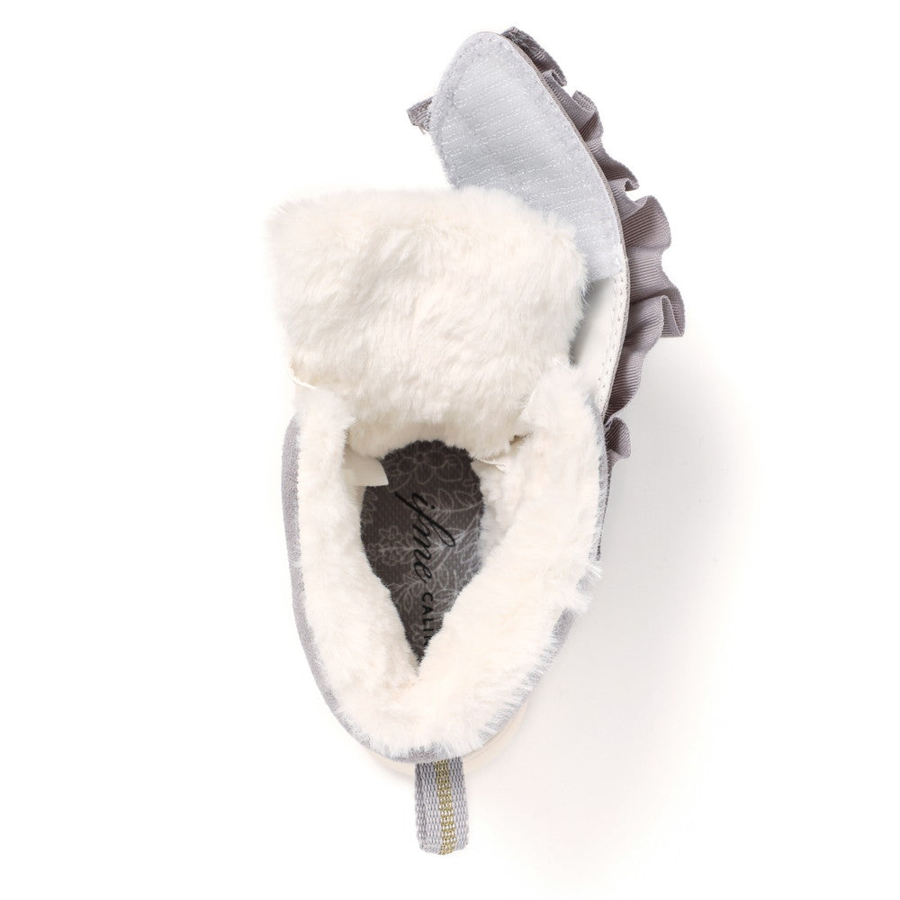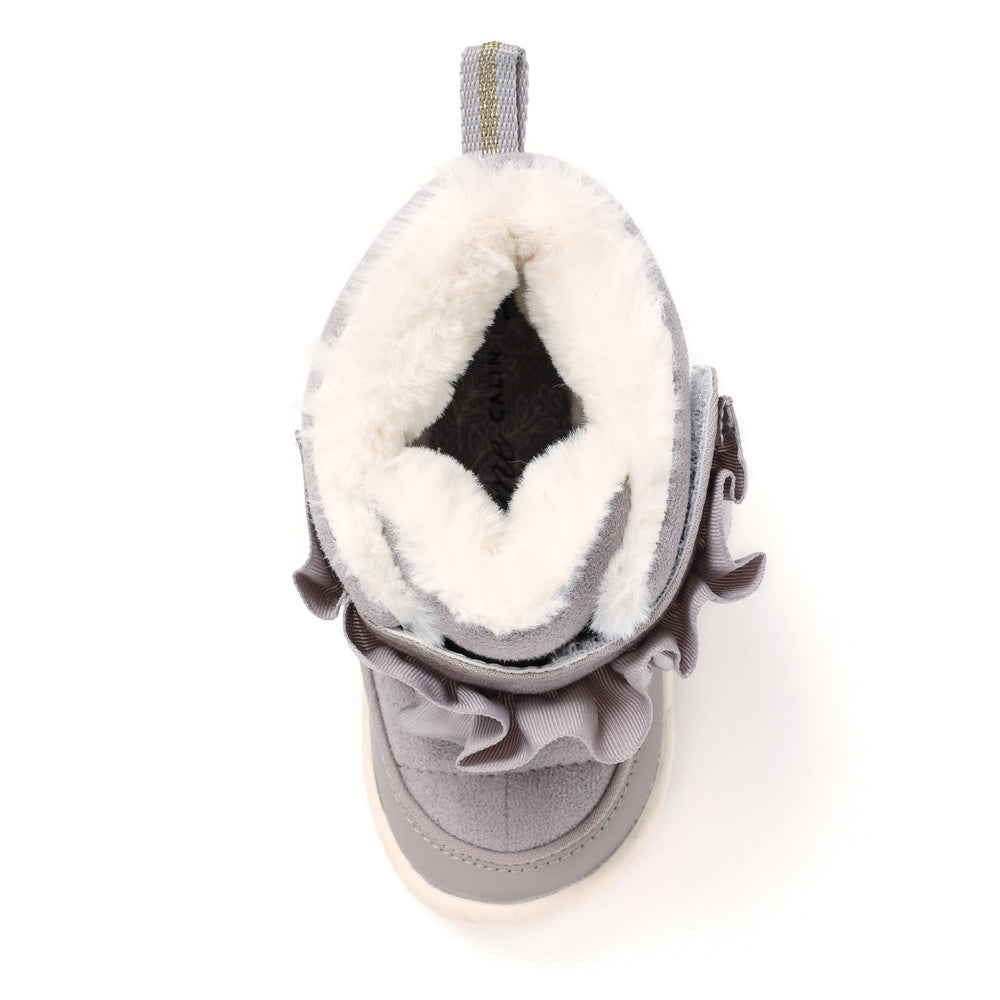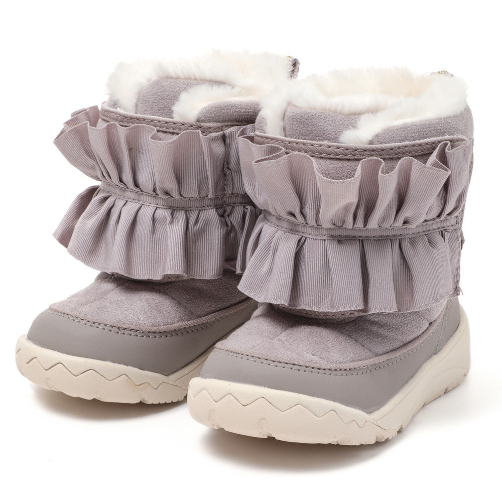 昨年大人気だったフリルモチーフブーツの最新モデル。たっぷりフリルがとびきりキュートなアイテムです。履き口が大きく開く仕様なので、厚めの靴下やボトムスでも履きやすかったり、防滑仕様でも軽いアウトソールを使用したり、子供にとっても履きやすいのがうれしいポイント。おそろいでベビーもあります。